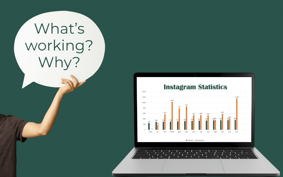 Start with top-line metrics: engagement (likes, comments, shares, saves), reach/impressions, and conversions (clicks, form fills, purchases). Pull your top ten posts from the year and ask: what format, caption, or offer made these succeed?